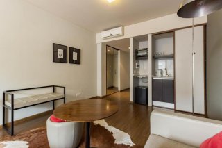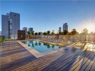 Hermoso monoambiente en edificio tipo hotel full amenities. Sexto piso al frente. La unidad cuenta con cocina integrada, living comedor, baño completo con bañadera y salida a balcón. Aire acondicionado. Agua caliente central. Edificio con seguridad y recepción 24hs. Piscina con solárium, sum y gimnasio. Gran espacio tipo bar en planta baja. Ubicado en Thames al 2300 esquina Charcas a pocos metros de Plaza Italia, Shopping Distrito Arcos y La Rural. Zona turística, polo gastronómico. Varias medios de transporte. Renta de alquiler temporal ménsula neta de usd 700.