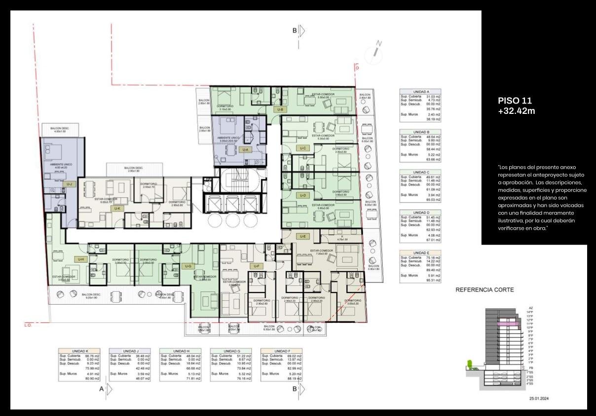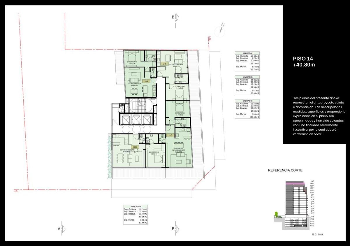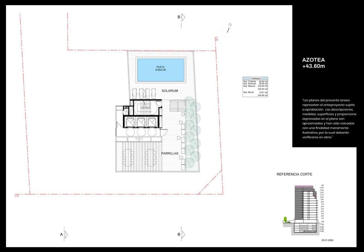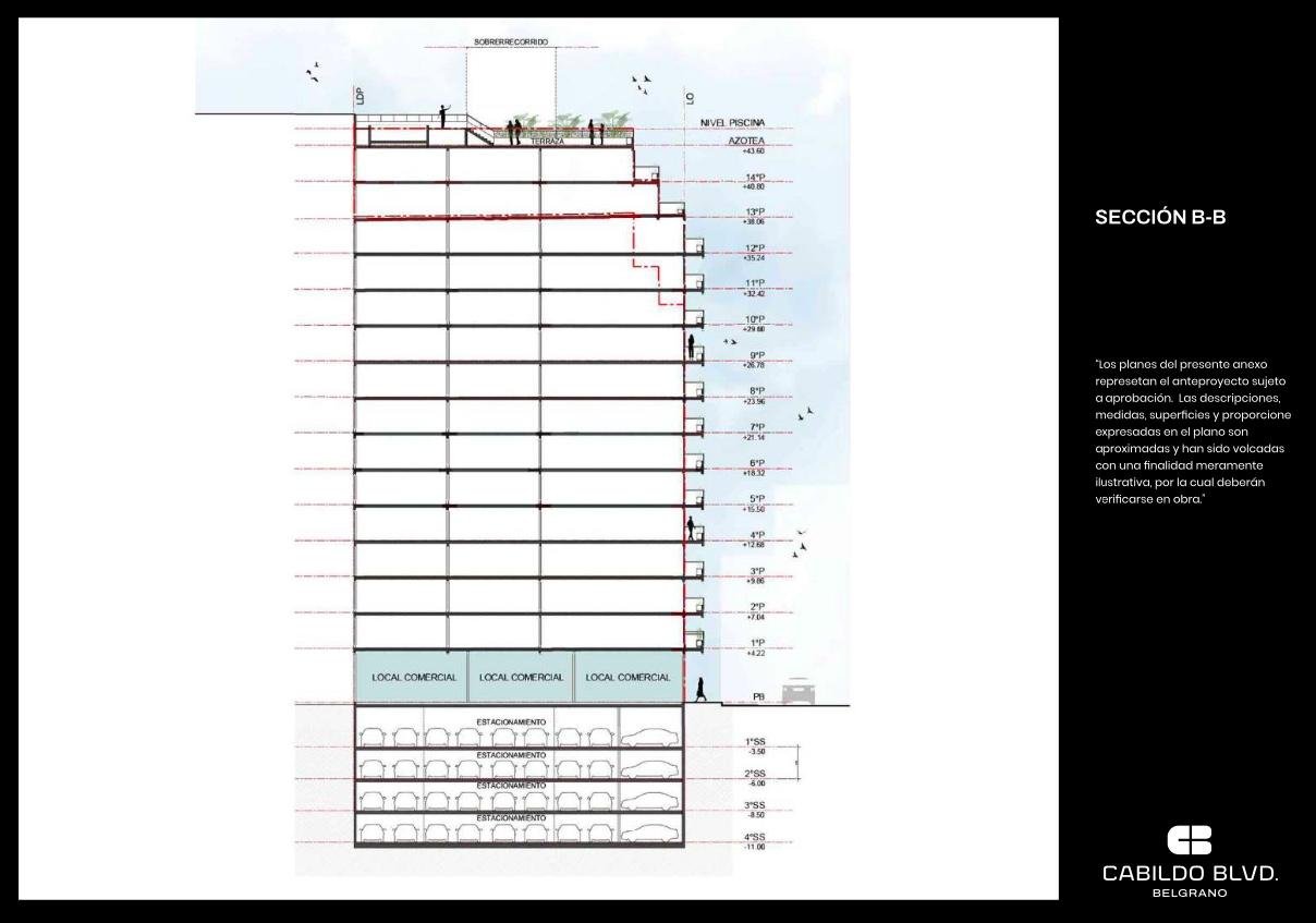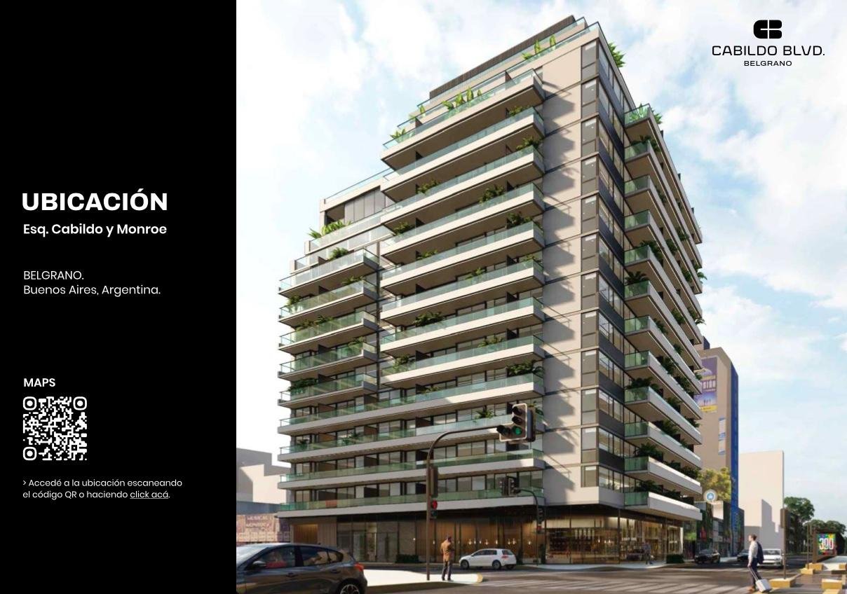 Oportunidad de inversión en Belgrano Presentamos un nuevo proyecto de viviendas con una ubicación estratégica en la intersección de las avenidas Cabildo y Monroe. Este emprendimiento ofrece una oportunidad de inversión con opciones de financiación flexibles, que incluyen un plan de pago del anticipo en hasta 18 meses. El edificio, construido en un terreno de 1.025 m², consta de planta baja y 13 pisos residenciales. La planta baja incluye locales comerciales, aptos para uso gastronómico, y el acceso principal por Av. Monroe. El proyecto cuenta con cuatro subsuelos de cocheras opcionales, espacio para bicicletas y un servicio de seguridad en el hall de recepción. Características de las unidades y amenities Las unidades residenciales, distribuidas desde el piso 1 al 13, incluyen tipologías de 1, 2 y 3 ambientes. Detalles de terminación: Aberturas: Carpintería exterior de aluminio con Doble Vidriado Hermético (DVH). Pisos: Porcelanato símil madera de alta gama en áreas principales y porcelanato de primera calidad en baños y cocinas. Cocina: Muebles bajo mesada y alacenas de melamina. Mesadas de Silestone o similar con bacha de acero inoxidable. Incluye horno y anafe eléctricos (Longvie o similar), así como un purificador de aire. Baños: Sanitarios de la marca Ferrum o similar con grifería monocomando FV o similar. Climatización: Calefacción por piso radiante eléctrico y pre-instalación para equipos de aire acondicionado. El edificio ofrece una variedad de amenities distribuidos en los pisos superiores: Piso 14: SUM con terraza, gimnasio y zona de coworking. Piso 15 (terraza): Piscina, solárium y área de parrillas. El proyecto cuenta con accesibilidad para personas con movilidad reducida y un grupo electrógeno de emergencia para servicios esenciales. Las medidas y detalles constructivos son aproximados y pueden ser modificados. El precio y la disponibilidad de las unidades están sujetos a cambios. La información proporcionada es de carácter ilustrativo y no contractual. C. D´Aria S.A. actúa como comercializadora del proyecto. CONSULTAR POR OTRAS UNIDADES DISPONIBLES Mostrar menos Adicionales Pileta Parrilla Solarium Gimnasio Seguridad 24hs