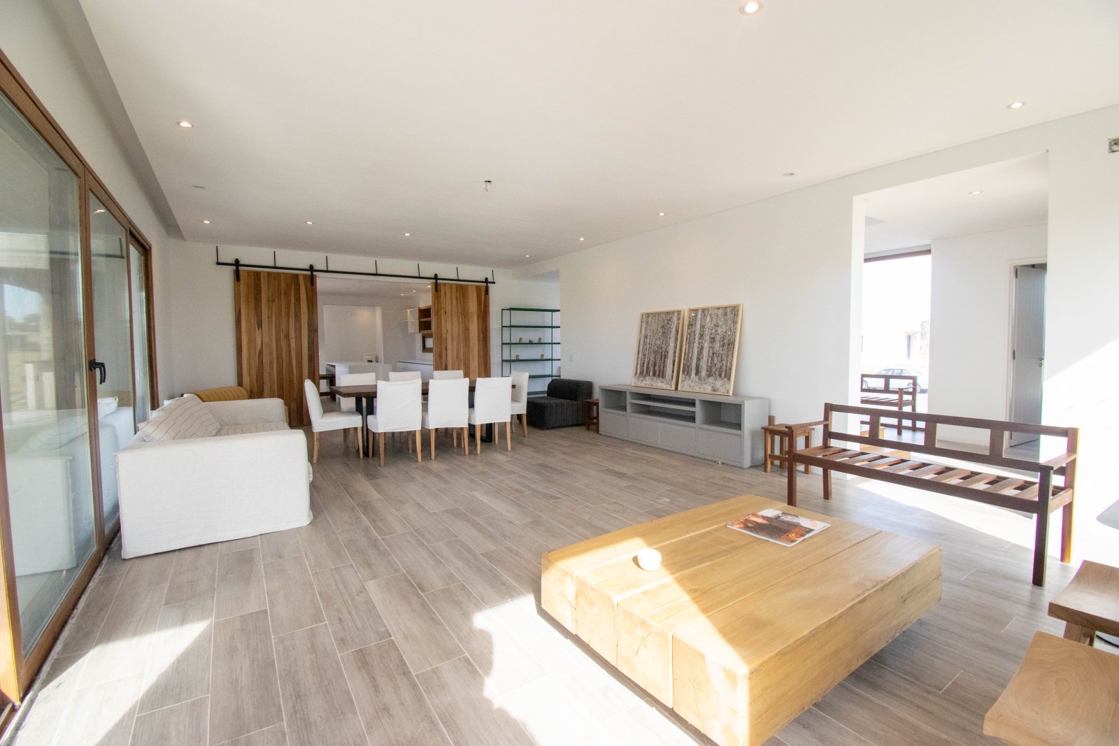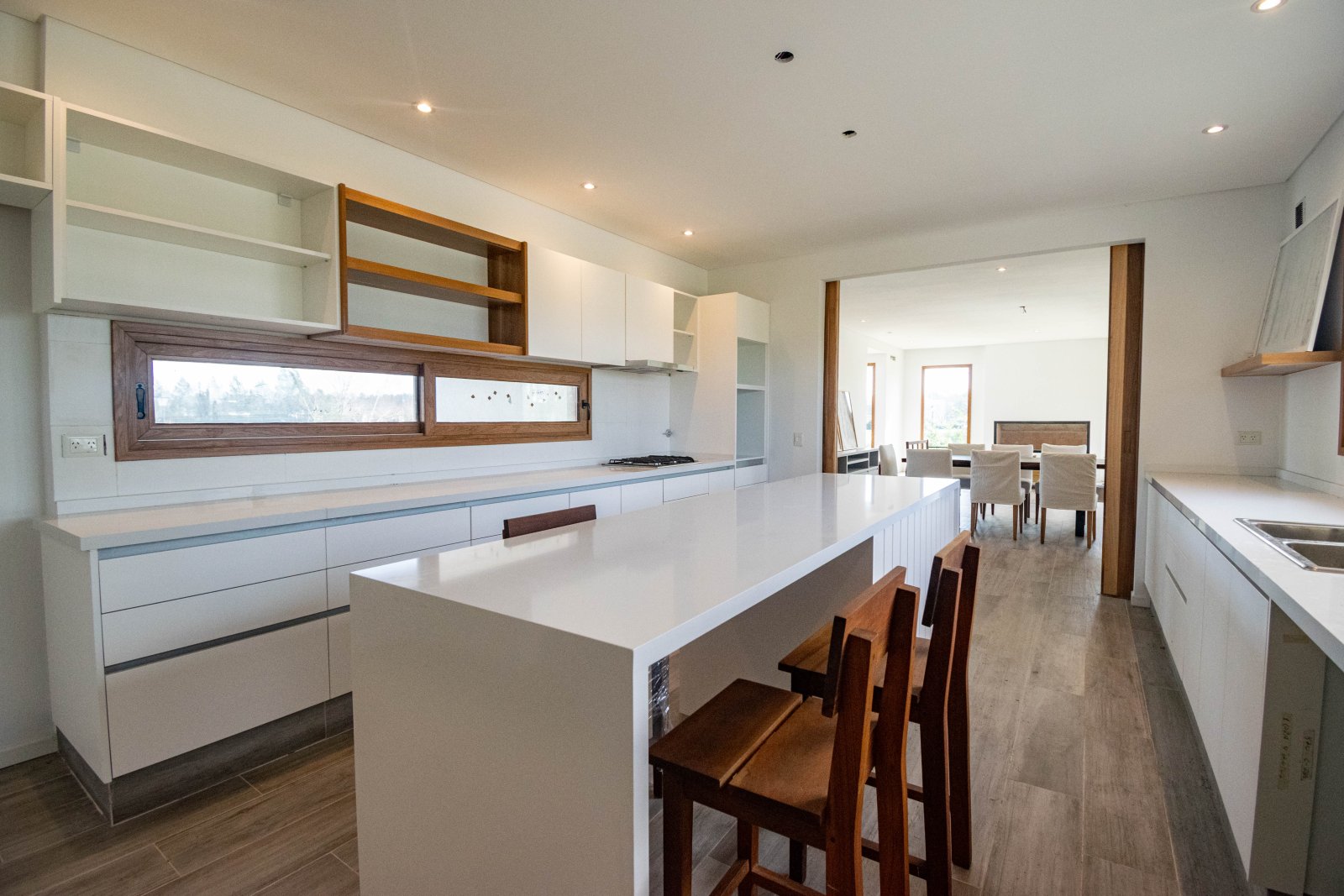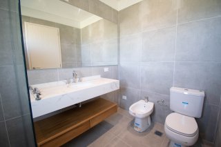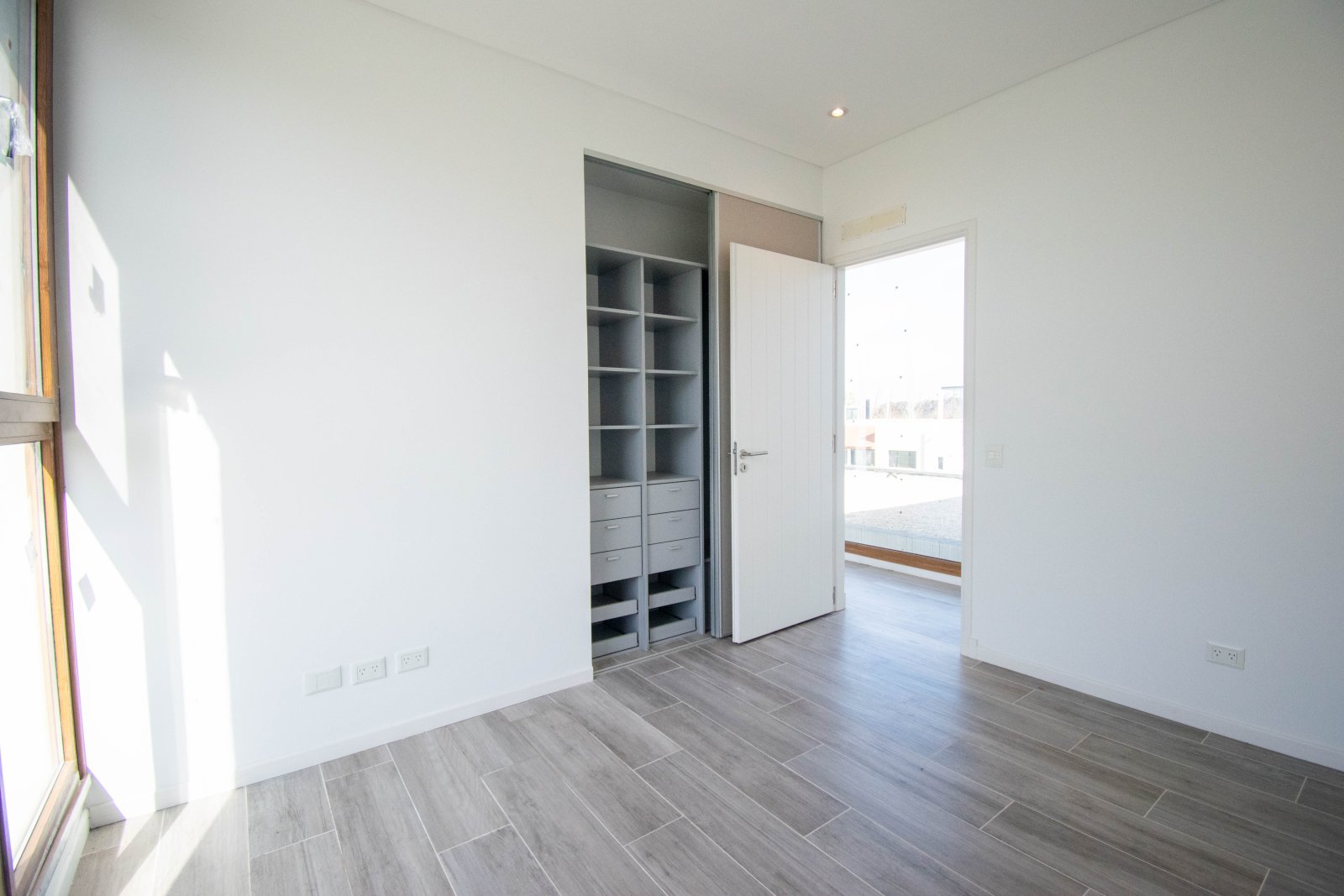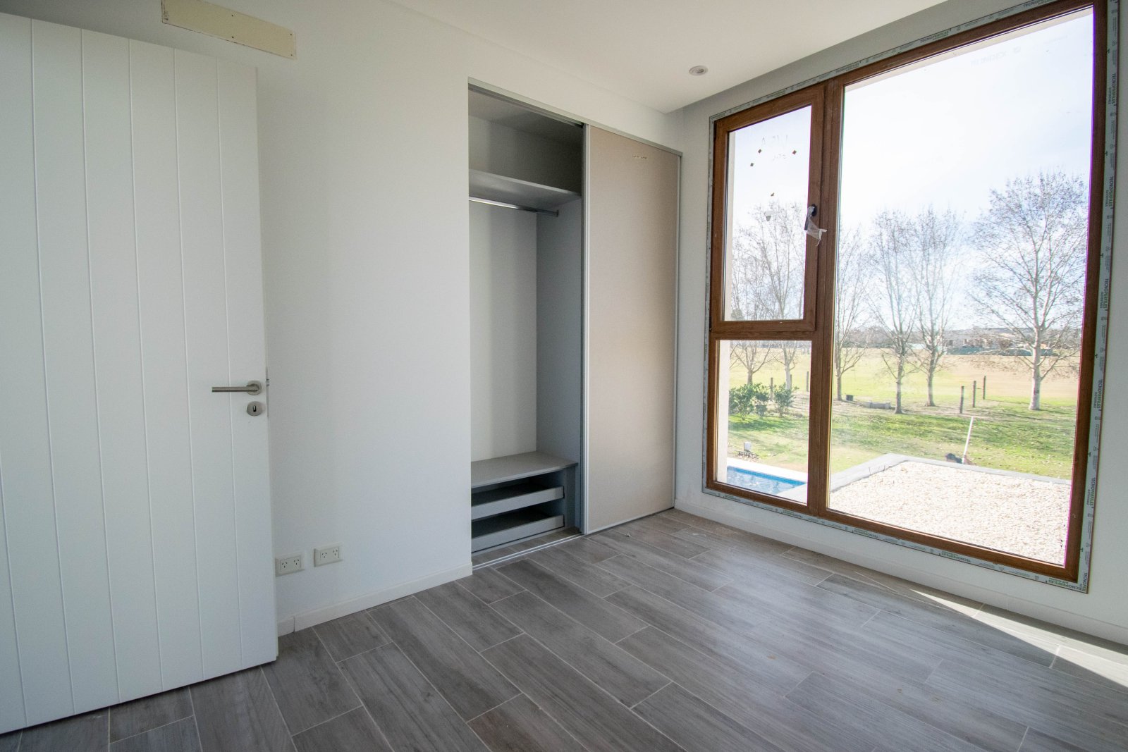 Casa a estrenar en Pilará – Exclusividad, diseño y naturaleza en uno de los mejores barrios de Pilar Te presentamos esta propiedad a estrenar ubicada en Pilará, uno de los barrios privados más prestigiosos de la zona, reconocido por su entorno natural, seguridad de primer nivel y amenities de categoría. Con una arquitectura imponente y detalles de alta gama, esta casa ofrece espacios amplios, luminosos y funcionales, pensados para disfrutar del confort y la tranquilidad en familia, rodeado de verde y a pocos minutos del centro de Pilar y del acceso a Panamericana. VIVIENDA UNIFAMILIAR Milord 870: Sup. cubierta: 294.21m2 Sup. semicubierta: 92.79m2 Sup. Total : 387m2 Sup. Lote : 1504m2 Ambientes: Living – Comedor – Toilette – Playroom – Dormitorio ppal. – Baño en suite – Vestidor – Dormitorio 1 – Dormitorio 2 – Dormitorio 3 – Baño completo compartimentado – Baño en suite dormitorio 3– Estudio – Escritorio PA Cocina – Lavadero – Dormitorio de servicio – Baño de servicio – Cochera para dos autos – Galeria techada – Parrilla. Fundaciones: Platea de H°A° h21 de 20cm de esp. Con doble malla y vigas de fundación perimetrales. Estructura: Vigas de Hormigon armado visto, columnas y tabiques de hormigon armado visto y losa de hormigon armado. Mampostería: Muro perimetral de ladrillo portante de 18x19x33. Muros interiores de ladrillo cerámico de 8x19x33. Cubierta: Techo de losa de hormigon armado y membrana en pasta con tela estructural. Revestimientos: En piso, porcelanato Ilva Identica acacia con zócalo de Pino pintado de blanco. En baños porccellanato ilva mediterránea Steel en pisos y cerámico Net rectificado en paredes. Cielorrasos: Durlock armado en todos los ambientes con buña perimetral de terminacion. Calefacción: Caldera dual Baxi Luna para agua caliente y calefacción. Piso radiante en toda la casa con dos colectores de 3 circuitos cada uno y termostato. Termotanque para agua caliente de 220L Aberturas: Aberturas de PVC foliado color Madera con DVH y vidrio laminado en puertas balcon y mosquiteros en todas las aberturas. Carpintería: Interiores y frentes de placar en melamina gris humo y roble miel con cajoneras y armado completo de interiores. Mueble de cocina en meloamina roble miel y puertas laqueadas blancas. Pérgola de madera vista en garaje y salida de playroom, techada. Marmolería: Mesadas de silestone blanco norte para baño principal y baño secundario. Mesada de silestone para cocina y para lavadero. Mesada de madera de laurel para la parrilla Pintura: Todos los muros interiores enduidos y pintados con pintura loxon interiores en blanco. Cielorrasos con latex blanco. Exterior revestido con revestimiento con color y textura hidrófugo tipo “tarquini”, marca Quimtex. Griferías: Griferias FV con cierre ceramico en baños, griferia monocomando FV swing en cocina y parrilla. Electricidad: Termicas y disyuntores marca Schneider, iluminación con dicroicas led en toda la casa. Pileta: Pileta hecha en hormigón armado con solárium y playita de 8x4m y desborde infinito a laguna.