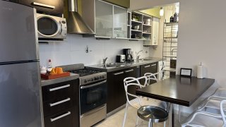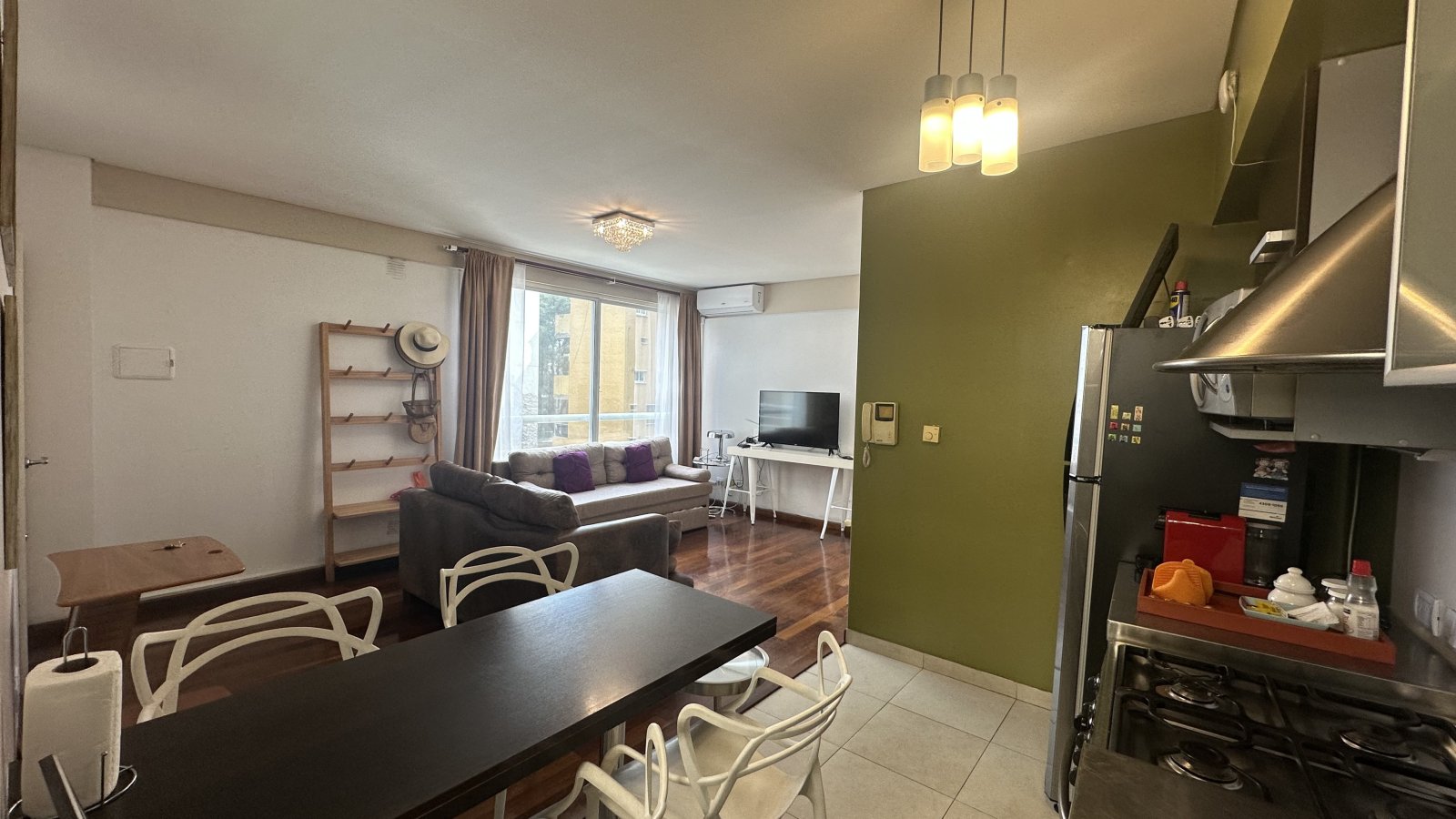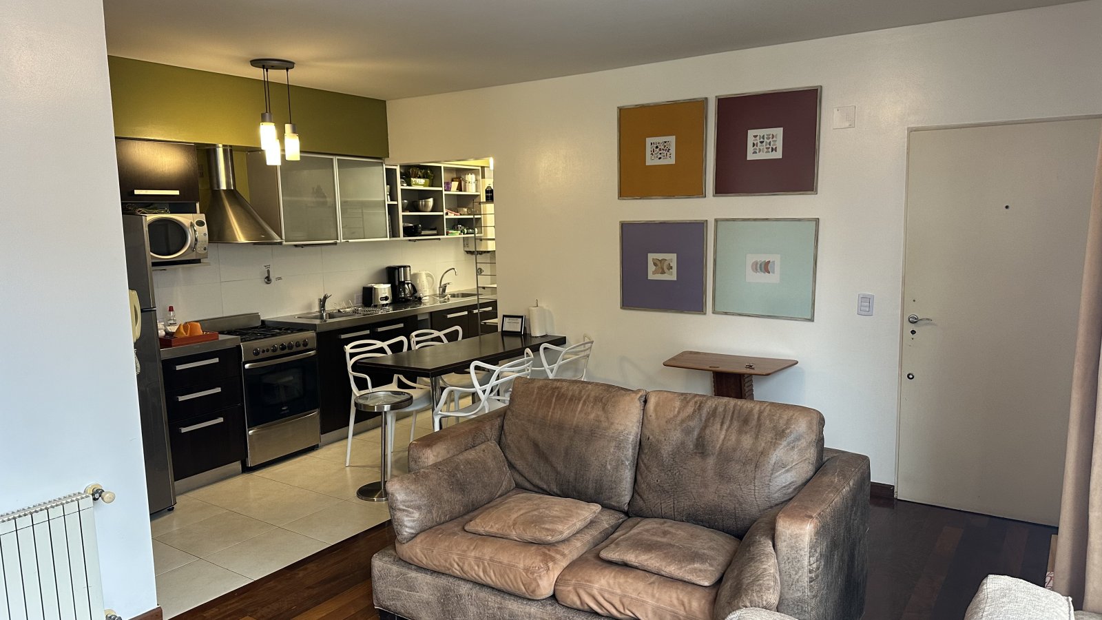 Hermoso departamento de 2 ambientes con cochera en el barrio de Palermo Soho. Ubicado en el quinto piso al contrafrente, muy luminoso, cuenta con cocina semi-integrada, living-comedor con gran ventanal, baño completo, amplio dormitorio con vestidor, espacio para escritorio y salida a balcón con vista abierta a la ciudad. El edificio posee full amenities, piscina en pb, solárium, sum con parrilla en ultimo piso. Ubicado a 4 cuadras de Av. Santa Fé, acceso a subte "línea D", con acceso a varias líneas de colectivos, y a pocas cuadras de Plaza Serrano. Rodeado de zona comercial, restaurantes y espacios verdes. Consultar opción de compra con muebles. Apto crédito.